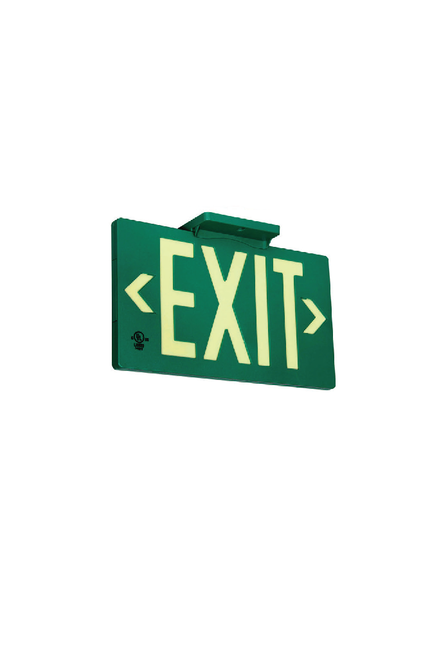 Eco-Brite exit sign provides powerful illumination without an electrical power source. Photoluminescent technology absorbs and stores ambient light, so that signs remain dependably visible during power outages or smoky conditions. ZING‚¬s Eco-Brite exit sign is visible from 100 feet. Illuminated exit signs prevent injuries and promote orderly egress during emergency situations. The sign is made in the USA from recycled plastic, which supports sustainability initiatives and LEED credits. The glow-in-the-dark design also saves on maintenance and electricity costs.