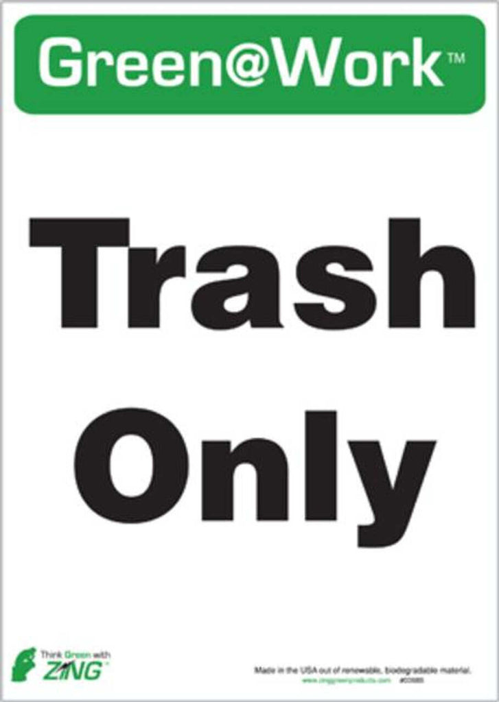 TRASH ONLY RECYCLE ECO LABEL, 5/PK 14X10
