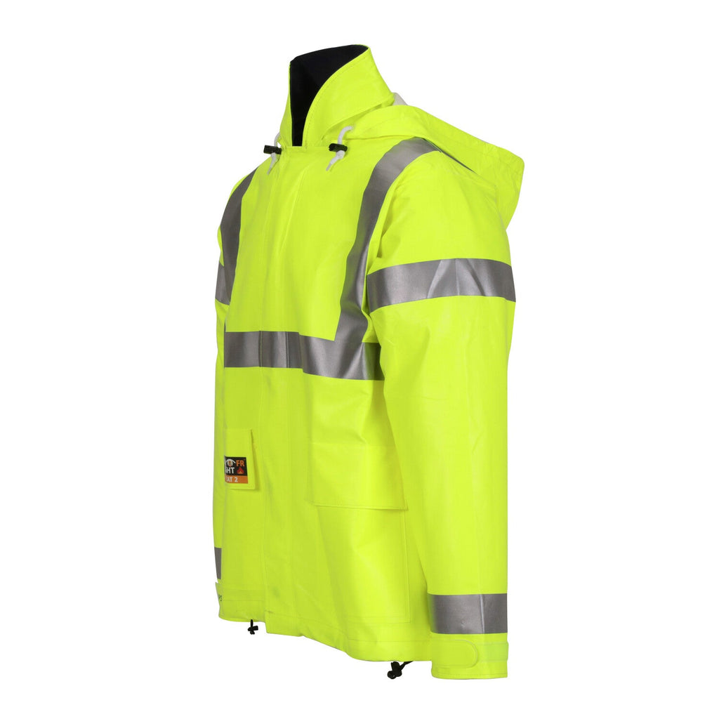 Revolutionary Quad-Hazard® technology delivers high visibility, liquid proof, arc flash and flash fire protection. Thermo-Grid® construction helps block out heat energy while the flame-resistant PVC coating on Nomex® provides 100% liquid proof protection in a soft, lightweight jacket.